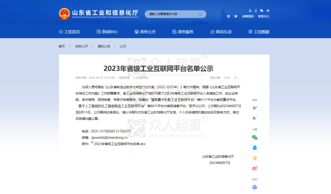 喜訊!龍輝起重成功入選2023年省級(jí)工業(yè)互聯(lián)網(wǎng)平臺(tái)示范工程項(xiàng)目